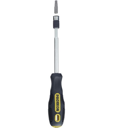 PROXXON Kombi-Bit Schraubendreher 1/4' Gerundete Zwei-Komponenten-Griffform mit flexiblen Noppen für ermüdungs- und schmerzfreies Arbeiten. Gute Griffigkeit bei schnellem Umgreifen. Hohe Drehmomente und Andruckkräfte durch ausbalanciertes Design für horizontalen und vertikalen Ansatz. Der Wechsel der Aufnahme erfolgt durch einfaches Verschieben der Aufnahmehülse. Länge ohne Griff: 110 mm. ...