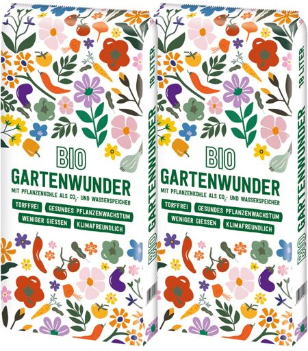 Bio Gartenwunder Universalerde mit Pflanzenkohle torffrei 2 x 18 L Produktnummer: 0688100971 BIO GARTENWUNDER Torffreie Bio-Allrounderde mit Pflanzenkohle – Die nachhaltige Erde für gesundes Pflanzenwachstum! Entdecken Sie die Vorteile der BIO GARTENWUNDER Torffreien Bio-Allrounderde mit Pflanzenkohle, einer umweltfreundlichen und leistungsstarken Lösung für alle Ihre Pflanzenbedürfnisse. Diese hochwertige Bio-Erde bietet die ideale Grundlage für Balkon-, Kübel-, Garten- und Gemüsepflanzen und sorgt für optimale Wachstumsbedingungen – von den Wurzeln bis zur Blüte. Hauptmerkmale: Torffrei & Umweltfreundlich Unsere Bio-Allrounderde verzichtet auf Torf und nutzt nachhaltige, nachwachsende Rohstoffe. Damit leisten Sie nicht nur einen Beitrag zum Umweltschutz, sondern fördern auch die Gesundheit Ihrer Pflanzen. Pflanzenkohle für Verbesserte Bodenstruktur Die innovative Pflanzenkohle optimiert die Bodenstruktur, speichert Nährstoffe und Wasser effizient und unterstützt so ein kräftiges Pflanzenwachstum sowie eine ertragreiche Ernte. Vielseitige Verwendung Ideal für jede Art von Pflanzen – sei es für Balkon-, Kübel-, Garten- oder Gemüsepflanzen. Diese Allrounderde eignet sich perfekt zum Pflanzen, Umtopfen und zur allgemeinen Pflege. Ausgewogene Nährstoffversorgung Unsere Bio-Erde enthält alle notwendigen Nährstoffe für ein gesundes Wachstum und fördert die Wurzelentwicklung, was zu stabilen und kräftigen Pflanzen führt. Optimierte Wasserhaltekapazität Dank der Pflanzenkohle wird Wasser effizient gespeichert und gleichmäßig abgegeben, was die Pflege Ihrer Pflanzen erleichtert und die Wassernutzung optimiert. Anwendungstipps: Füllen Sie die BIO GARTENWUNDER Torffreie Bio-Allrounderde in Ihre Pflanzgefäße oder Beete. Achten Sie darauf, dass die Erde gleichmäßig verteilt ist, und bewässern Sie die Pflanzen ausreichend. Ideal für alle Garten- und Pflanzprojekte! Einfache Pflege dank verbesserter Wasserhaltekapazität – Effiziente Wassernutzung für weniger Aufwand Optimale Bodenstruktur mit Pflanzenkohle – Verbessert Nährstoffspeicherung und Wasserhaltefähigkeit Vielseitig einsetzbar – Perfekt für Balkon-, Kübel-, Garten- und Gemüsepflanzen Inhalt: 2 x 18 L Torffrei für Nachhaltigkeit – Umweltfreundliche Bio-Allrounderde ohne Torf Herstellerinformationen: Floragard Vertriebs GmbH für Gartenbau Gerhard-Stalling-Straße 7 26135 Oldenburg, Deutschland eMail: info@floragard.de Herstellernr. 131684 ...
