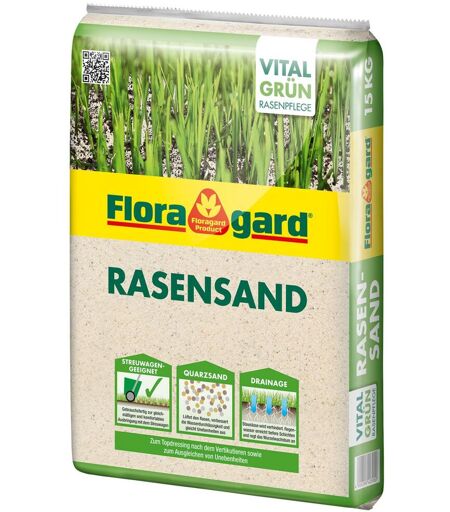 Floragard Rasensand Produktnummer: 0688301487 Der reine Quarzsand bietet beste Voraussetzungen für das Topdressing von Rasenflächen nach dem Vertikutieren oder Lüften sowie zum Ausgleichen von Unebenheiten. Das Produkt ist gebrauchsfertig und eignet sich zur gleichmäßigen und komfortablen Ausbringung mit dem Streuwagen. Floragard Rasensand lüftet nach dem intensiven Einarbeiten den Boden und verbessert die Wasserdurchlässigkeit, während die Belastbarkeit deutlich erhöht wird. Regenwasser erreicht deutlich tiefere Schichten, was das Wurzelwachstum anregt und für ein gesundes und vitales Grün sorgt. Zum Topdressing nach dem Vertikutieren sowie zum Ausgleichen von Unebenheiten Lüftet den Rasen und Verbessert die Wasserdurchlässigkeit. Regenwasser erreicht tiefere Schichten und regt zum Wurzelwachstum an Erhöht die Belastbarkeit der Rasenfläche Lieferumfang: 1 x 15 kg Streuwagenfähig Herstellerinformationen: Floragard Vertriebs GmbH für Gartenbau Gerhard-Stalling-Straße 7 26135 Oldenburg, Deutschland eMail: info@floragard.de Herstellernr. 114847 ...