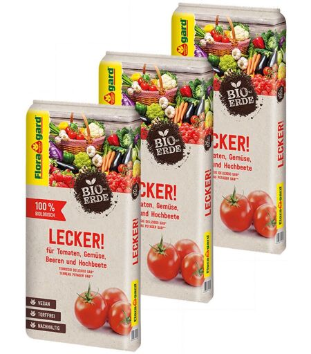 Floragard Bio Gemüseerde Lecker torffrei Produktnummer: 0688100663 Die Floragard Bio-Tomaten-Gemüseerde Lecker ist eine torffreie Bio-Spezialerde und geeignet für Tomaten, Zucchini, Auberginen und anderes Fruchtgemüse. Reiche und gesunde Ernte dank dem veganen Dünger Flora Veggie Power. Fein abgesiebter Grünschnittkompost trägt zur Nährstoffversorgung bei und belebt die Erde. Die Gemüseerde ist unbedenklich für Kinder, Haustiere und Tiere im Garten dank dem veganen Dünger. Das enthaltene Kokosmark verbessert auf natürliche Art und Weise die Wasserleitung in der Erde. Torffreie Bio-Spezialerde Mit veganen Dünger Flora Veggie Power Kokosmark verbessert auf natürliche Art und Weise die Wasserleitung in der Erde Lieferumfang: 3 x 20 L Gemüseerde Grünschnittkompost trägt zur Nährstoffversorgung bei Unbedenklich für Kinder, Haustiere und Tiere im Garten dank dem veganen Dünger Herstellerinformationen: Floragard Vertriebs GmbH für Gartenbau Gerhard-Stalling-Straße 7 26135 Oldenburg, Deutschland eMail: info@floragard.de Herstellernr. 120052 ...