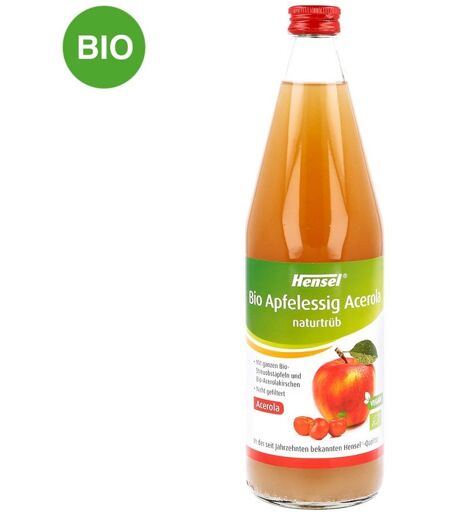 Wirkstoffe / Inhaltsstoffe / ZutatenZutaten von Hensel Apfelessig naturtr.m.5% Acerola bio: Bio Apfelessig naturvergoren, Bio-Acerolasaft Nährwertepro 100 ml Energie71 kJ / 17 kcal Fett< 0,5 g - davon gesättigte Fettsäuren< 0,5 g Kohlenhydrate0,5 g - davon Zucker< 0,5 g Eiweiß< 0,5 g Salz< 0,01 gGegenanzeigenBei bekannter Überempfindlichkeit gegenüber einem der oben genannten Inhaltsstoffe sollte dieses Produkt nicht angewendet werden. Hensel Apfelessig naturtr.m.5% Acerola bio können in Ihrer Versandapotheke www.juvalis.de erworben werden. ...
