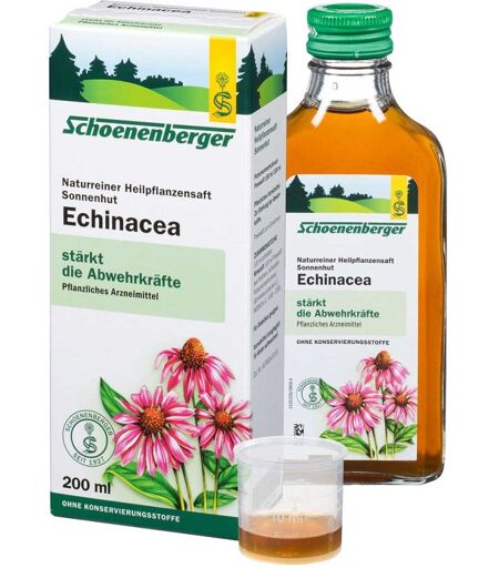 Anwendungsgebiet von Schoenenberger Naturreiner Heilpflanzensaft EchinaceaSchoenenberger Naturreiner Heilpflanzensaft Echinacea dient zur unterstützenden Behandlung häufig wiederkehrender (rezidivierender) Infekte im Bereich der Atemwege und der ableitenden Harnwege. In der heutigen Zeit, in der unser Körper ständig neuen Herausforderungen gegenübersteht, ist ein starkes Immunsystem von entscheidender Bedeutung. Besonders in der kalten Jahreszeit oder in stressigen Phasen, in denen die Gefahr von Erkältungen, Infekten oder gar Harnwegsentzündungen steigt, benötigen wir eine verlässliche Unterstützung. Schoenenberger Naturreiner Heilpflanzensaft Echinacea bietet genau diese Unterstützung und sorgt dafür, dass Sie und Ihre Familie gesund und vital bleiben.Wirkungsweise von Schoenenberger Naturreiner Heilpflanzensaft EchinaceaWirkstoffe / Inhaltsstoffe / ZutatenInhaltsstoffe von Schoenenberger Naturreiner Heilpflanzensaft Echinacea :