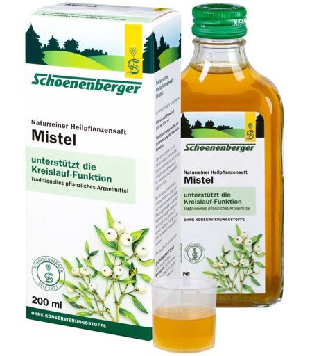 Anwendungsgebiet von Schoenenberger Naturreiner Heilpflanzensaft MistelSchoenenberger Naturreiner Heilpflanzensaft Mistel ist ein traditionelles pflanzliches Arzneimittel zur Unterstützung der Kreislauf-Funktion ausschließlich aufgrund langjähriger Anwendung. Wirkstoffe / Inhaltsstoffe / ZutatenInhaltsstoffe von Schoenenberger Naturreiner Heilpflanzensaft Mistel : 100 ml enthalten: