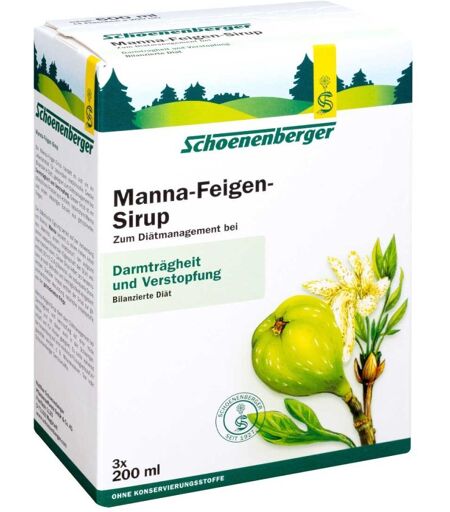 Anwendungsgebiet von Manna Feigen Sirup SchoenenbergerManna Feigen Sirup Schoenenberger ist ein diätetisches Lebensmittel für besondere medizinische Zwecke (Bilanzierte Diät). Zum Diätmanagement bei Darmträgheit und Verstopfung.Wirkungsweise von Manna Feigen Sirup SchoenenbergerManna Feigen Sirup Schoenenberger ist ein pflanzliches Produkt aus echtem, natürlichem Manna und einem wässrigen Extrakt aus getrockneten Feigen.