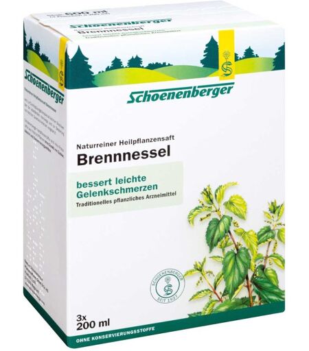 Anwendungsgebiet von Schoenenberger Naturreiner Heilpflanzensaft BrennnesselSchoenenberger Naturreiner Heilpflanzensaft Brennnessel ist ein traditionelles pflanzliches Arzneimittel und wird angewendet zur Durchspülungstherapie bei leichten Beschwerden der ableitenden Harnwege und zur Besserung von leichten Gelenkschmerzen. Brennnesselsaft ist seit Jahrzehnten ein geschätztes Naturheilmittel in der Phytotherapie. Schoenenberger Naturreiner Heilpflanzensaft Brennnessel bietet Ihnen die reine Kraft der Brennnessel in flüssiger Form, um Ihre Gesundheit auf natürliche Weise zu unterstützen.Wirkungsweise von Schoenenberger Naturreiner Heilpflanzensaft BrennnesselWirkstoffe / Inhaltsstoffe / ZutatenInhaltsstoffe von Schoenenberger Naturreiner Heilpflanzensaft Brennnessel: 100 ml Presssaft aus frischem Brennnesselkraut (Urtica dioica L., Urtica urens L.) (1 : 0,55 – 0,82).GegenanzeigenBei bekannter Überempfindlichkeit gegenüber einem der oben genannten Inhaltsstoffe sollte dieses Produkt nicht angewendet werden. DosierungAnwendungsempfehlung von Schoenenberger Naturreiner Heilpflanzensaft Brennnessel: Erwachsene nehmen 3 x täglich 10 ml Presssaft unverdünnt oder mit etwas Flüssigkeit, vorzugsweise Wasser, ein. Bitte verwenden Sie den beiliegenden Dosierbecher. Flasche vor Gebrauch schütteln! Dauer der Durchspülungstherapie bei leichten Beschwerden im Bereich der ableitenden Harnwege: Brennnesselkrautzubereitungen werden traditionell über einen Zeitraum von 2 bis 4 Wochen angewendet. Wenn sich die Beschwerden nach 1 Woche nicht gebessert haben, ist umgehend ein Arzt oder eine andere in einem Heilberuf tätige qualifizierte Person aufzusuchen. Bei der Durchspülungstherapie ist auf reichlich Flüssigkeitszufuhr während des gesamten Tages zu achten. Dauer der Anwendung bei leichten Gelenkschmerzen: Brennnesselkrautzubereitungen werden traditionell über einen Zeitraum von 2 bis 4 Wochen angewe ...
