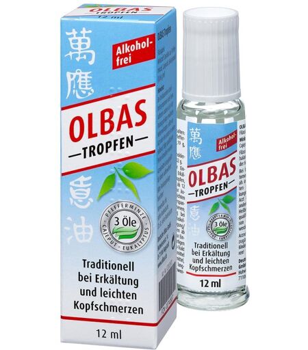 Anwendungsgebiet von Olbas TropfenOlbas Tropfen werden traditionell angewendet zur Inhalation und Einnahme bei Erkältungskrankheiten, wie Husten, Schnupfen und Heiserkeit. Sie sind hier geeignet für Jugendliche ab 12 Jahren und Erwachsene. Erwachsene können Olbas Tropfen auch bei leichten krampfartigen Beschwerden im Magen-Darm-Trakt einnehmen, sowie zur äußerlichen Anwendung bei leichten Kopfschmerzen verwenden. Für Jugendliche ab 12 Jahren und Erwachsene können Olbas Tropfen auch zur äußeren Anwendung bei lokalen Muskelschmerzen verwendet werden. Wirkstoffe / Inhaltsstoffe / Zutaten Inhaltsstoffe von Olbas Tropfen : 1 ml (0,91 g) Flüssigkeit enthalten: Destillat aus: Wirkstoffe: Pfefferminzöl 0,48 g Cajeputöl 0,19 g Eukalyptusöl 0,19 g Sonstige Bestandteile: Wacholderbeeröl 0,03 g Gaultheriaöl 0,02 g GegenanzeigenBei bekannter Überempfindlichkeit gegen einzelne Inhaltsstoffe sollte Olbas Tropfen nicht angewendet werden.DosierungAnwendungsempfehlung von Olbas Tropfen: Innerliche Anwendung bei Erkältung: Erwachsene und Jugendliche ab 12 Jahren: 3-mal täglich 3 Tropfen in etwas lauwarmem Wasser einnehmen. Die Anwendung für Kinder unter 12 Jahren ist nicht vorgesehen. Innerliche Anwendung bei leichten, krampfartigen Beschwerden des Magen-Darm-Trakts: Erwachsene ab 18 Jahren: 3-mal täglich 3 Tropfen in etwas lauwarmem Wasser einnehmen. Die Anwendung für Kinder und Jugendliche unter 18 Jahren ist nicht vorgesehen. Inhalation bei Erkältung: Erwachsene und Jugendliche ab 12 Jahren: 2 – 4 Tropfen in ein Behältnis mit heißem Wasser geben und die aufsteigenden Dämpfe inhalieren. Die Anwendung kann bis zu 3-mal täglich wiederholt werden. Die Anwendung für Kinder unter 12 Jahren ist nicht vorgesehen. Äußerliche Anwendung bei Muskelschmerzen:< ...