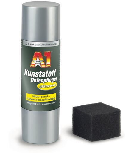 DR. O.K.WACK A1 Kunststoff-Tiefenpfleger glänzend (250 ml) A1 Kunststoff-Tiefenpfleger glänzend mit starker Farbauffrischung und Langzeitwirkung. Reinigt und wirkt staubabweisend. A1 Kunststoff-Tiefenpfleger glänzend frischt verblasste Farben von Kunststoff-, Gummi- und Vinylteilen wieder auf, ohne dass die Oberfläche dabei speckig wird. Das Kunststoffpflegemittel reinigt leicht verschmutzte Oberflächen, bietet UV-Schutz und schützt diese vor erneutem Ausbleichen und Versprödung. Dank der Langzeitwirkung bleibt das Aussehen auch nach mehreren Waschanlagen-Reinigungen und Fahrten bei Regen erhalten. Eigenschaften: Mit enormer Langzeitwirkung gegenüber herkömmlichen Produkten (besonders beständig bei Regen, Wagenwäschen u.a.) Für innen und außen, entfernt Politur- und Wachsrückstände, wirkt antistatisch Erzeugt hygienisch reine Oberflächen durch antibakterielle Wirkung Entfernt Politur- und Wachsrückstände Der mitgelieferte Spezialschwamm garantiert eine einfache und leichte Anwendung Lösungsmittelfrei Zusatzbezeichnung:glänzend ...