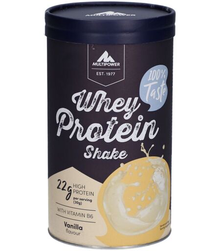 Nahrungsergänzungsmittel sind kein Ersatz für eine ausgewogene und abwechslungsreiche Ernährung und eine gesunde Lebensweise.Multipower Whey Protein Shake Vanille Der Multipower Whey Protein Shake liefert 22g hochwertiges Protein pro Portion und kombiniert drei Proteinquellen für optimale Ergebnisse. Ideal für Muskelaufbau, Regeneration und den Erhalt gesunder Knochen. Mit exzellenter Löslichkeit und cremiger Konsistenz ist dieser Shake perfekt für den Genuss morgens oder nach dem Workout. Verpackt in einer umweltfreundlichen, recyclebaren Pappdose.Zutaten:Molkenprotein-Konzentrat, Molkenprotein-Isolat, hydrolisiertes Molkenprotein, Aroma, Süßungsmittel (Sucralose), Emulgator (Sojalecithin).Nährwertangaben: Nährwert Menge Energie 120 kcal Protein 22 g Kohlenhydrate 2 g Fett 1 g Ballaststoffe 0 g Salz 0,2 g Verzehrsempfehlung:30g Pulver (ca. 1 Messlöffel) in 200ml Wasser oder fettarmer Milch mixen. Morgens oder direkt nach dem Training einnehmen.Aufbewahrungs- & Verwendungshinweis:Kühl, trocken und lichtgeschützt lagern. Nach Gebrauch wieder gut verschließen. Außerhalb der Reichweite von kleinen Kindern aufbewahren. Nahrungsergänzungsmittel sind kein Ersatz für eine ausgewogene und abwechslungsreiche Ernährung sowie eine gesunde Lebensweise.Nettofüllmenge:420g (ca. 14 Portionen)Hestellerdaten:Multipower GmbH ...