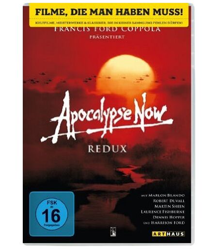 AspectRatio : 2.35 : 1, AudienceRating : Freigegeben ab 16 Jahren, Binding : DVD, Label : STUDIOCANAL, Publisher : STUDIOCANAL, RegionCode : 2, Format : Dolby, Feature : Jahr : 1979, medium : DVD, publicationDate : 2012-01-01, releaseDate : 2012-01-05, runningTime : 194 minutes, theatricalReleaseDate : 2002-04-08, actors : Marlon Brando, Robert Duvall, Martin Sheen, music : Carmine Coppola, Francis Ford Coppola ...