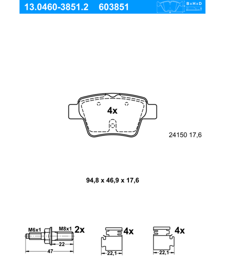 ATE Bremsbelagsatz, Scheibenbremse Dicke/Stärke [mm]:17,6 mm Ergänzungsartikel/Ergänzende Info:mit Zubehör Prüfzeichen:E1 90R-01832/643 Bremssystem:Bosch Verschleißwarnkontakt:exkl. Verschleißwarnkontakt Breite [mm]:94,8 mm Verschleißwarnkontakt:nicht für Verschleißwarnanzeiger vorbereitet MAPP-Code vorhanden Höhe [mm]:46,9 mmMenge 1 entspricht einem Satz (4 Bremsbeläge für links UND rechts) , u.a. für Peugeot 207/207+ (WA, WC), 1587 cm³, 109 PS (80 kW), 2/2006 bis 10/2013, KBA-Nr: 3003ACFPeugeot 207/207+ (WA, WC), 1598 cm³, 150 PS (110 kW), 2/2006 bis 10/2013, KBA-Nr: 3003ACKPeugeot 207/207+ (WA, WC), 1560 cm³, 90 PS (66 kW), 2/2006 bis 10/2013, KBA-Nr: 3003ACCPeugeot 207/207+ (WA, WC), 1560 cm³, 109 PS (80 kW), 2/2006 bis 10/2013, KBA-Nr: 3003ACDPeugeot 207 Cc (WD), 1598 cm³, 120 PS (88 kW), 2/2007 bis 10/2013, KBA-Nr: 3003AEEPeugeot 207 Cc (WD), 1598 cm³, 150 PS (110 kW), 2/2007 bis 12/2012, KBA-Nr: 3003AEDPeugeot 207 Cc (WD), 1560 cm³, 109 PS (80 kW), 2/2007 bis 1/2015, KBA-Nr: 3003AEFPeugeot 207/207+ (WA, WC), 1598 cm³, 120 PS (88 kW), 2/2007 bis 12/2012, KBA-Nr: 3003ADQPeugeot 207/207+ (WA, WC), 1598 cm³, 174 PS (128 kW), 2/2007 bis 12/2012, KBA-Nr: 3003AEZPeugeot 207 Sw (WK), 1598 cm³, 120 PS (88 kW), 6/2007 bis 10/2013, KBA-Nr: 3003AFUPeugeot 207 Sw (WK), 1560 cm³, 90 PS (66 kW), 6/2007 bis 12/2012, KBA-Nr: 3003AFWPeugeot 207 Sw (WK), 1560 cm³, 109 PS (80 kW), 6/2007 bis 12/2012, KBA-Nr: 3003AFXPeugeot 207 Sw (WK), 1598 cm³, 174 PS (128 kW), 2/2007 bis 12/2012, KBA-Nr: 3003AFVPeugeot 207 (WA, WC), 1560 cm³, 90 PS (66 kW), 4/2007 bis 10/2012Peugeot 207/207+ (WA, WC), 1598 cm³, 156 PS (115 kW), 10/2009 bis 12/2012, KBA-Nr: 3003AKUPeugeot 207/207+ (WA, WC), 1560 cm³, 112 PS (82 kW), 8/2009 bis 12/2012, KBA-Nr: 3003ALPPeugeot 207 Cc (WD), 1598 cm³, 156 PS (115 kW), 10/2009 bis 12/2013, KBA-Nr: 3003AKVPeugeot 207 Sw (WK), 1560 cm³, 112 PS (82 kW), 8/2009 bis 10/2013, KBA-Nr: 3003AKIPeugeot 207/207+ (WA, WC), 1598 cm³, 110 PS (81 kW), 9/2008 bis 12/2012Peugeot 207 Sw (WK), 1598 cm³, 150 PS (110 kW), 2/2007 bis 12/2012Peugeot 207 (WA, WC), 1560 cm³, 92 PS (68 kW), ab 11/2009Peugeot 207 Sw (WK), 1560 cm³, 90 PS (66 kW), 8/2007 bis 12/2012Peugeot 207 Sw (WK), 1560 cm³, 109 PS (80 kW), 8/2007 bis 12/2012Peugeot 207 (WA, WC), 1598 cm³, 120 PS (88 kW), 3/2007 bis 12/2012Peugeot 207 (WA, WC), 1560 cm³, 109 PS (80 kW), 4/2006 bis 12/2012 , OE-Nummer:LPR:05P1278BOSCH:0 986 494 099TEXTAR:2473701JURID:573235JQUINTON HAZELL:BP1675VALEO:598702JURID:573235JCGALFER:B1.G102-0995.2ICER:181765TEXTAR:24737 176 1 4PAGID:T1759CIFAM:822-639-0HELLA PAGID:8DB 355 013-851METELLI:22-0639-0HELLA:8DB 355 013-851BREMBO:P 61 100REMSA:1138.00TRW:GDB1678ROADHOUSE:21138.00GALFER:G1020995MINTEX:MDB2951 ...