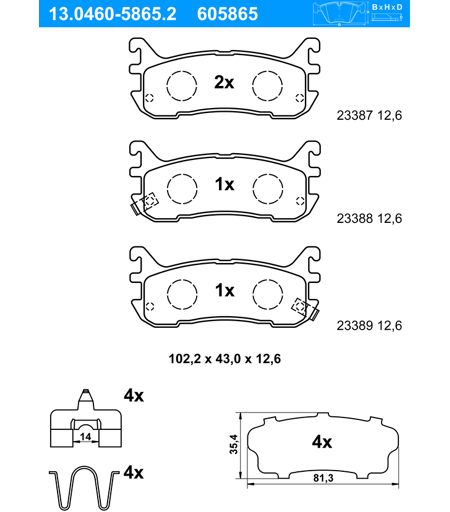 Ate Bremsbelagsatz, Scheibenbremse Hinten Rechts Links Mit Zubehör Für Mazda Ncy5-26-43za Bcyc-26-43z N0y8-26-43za 13.0460-5865.2