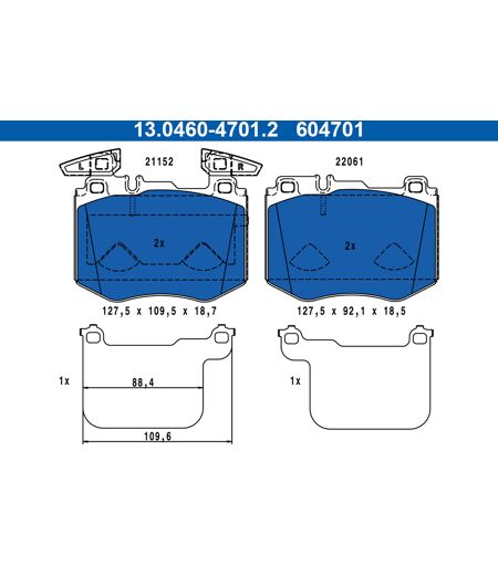 ATE Bremsbelagsatz, Scheibenbremse Verschleißwarnkontakt:für Verschleißwarnanzeiger vorbereitet Breite [mm]:127,5 mm Dicke/Stärke 1 [mm]:18,7 mm Verschleißwarnkontakt:exkl. Verschleißwarnkontakt Prüfzeichen:E1 90R-02A0334/0126 Artikelnummer des empfohlenen Zubehörs:24.8190-0067.2 Höhe 1 [mm]:109,5 mm Dicke/Stärke 2 [mm]:18,5 mm Ergänzungsartikel/Ergänzende Info 2:mit Anti-Quietsch-Blech MAPP-Code vorhanden Höhe 2 [mm]:92,1 mm , u.a. für Mercedes-Benz GLC (X253), 2143 cm³, 170 PS (125 kW), 6/2015 bis 4/2019, KBA-Nr: 1313EWRMercedes-Benz GLC (X253), 2143 cm³, 204 PS (150 kW), 6/2015 bis 4/2019, KBA-Nr: 1313EWPMercedes-Benz GLC (X253), 1991 cm³, 211 PS (155 kW), 6/2015 bis 4/2019, KBA-Nr: 1313EUDMercedes-Benz GLC (X253), 1991 cm³, 245 PS (180 kW), 7/2015 bis 4/2019, KBA-Nr: 1313EUCMercedes-Benz GLC (X253), 2143 cm³, 163 PS (120 kW), 6/2015 bis 4/2019, KBA-Nr: 1313EWQMercedes-Benz GLC (C253), 1991 cm³, 211 PS (155 kW), 6/2016 bis 4/2019, KBA-Nr: 1313GHAMercedes-Benz GLC (C253), 2143 cm³, 170 PS (125 kW), 6/2016 bis 4/2019, KBA-Nr: 1313GGZMercedes-Benz GLC (C253), 2143 cm³, 204 PS (150 kW), 6/2016 bis 4/2019, KBA-Nr: 1313GHBMercedes-Benz GLC (X253), 2987 cm³, 258 PS (190 kW), 10/2016 bis 4/2019, KBA-Nr: 1313GHHMercedes-Benz GLC (C253), 2987 cm³, 258 PS (190 kW), 10/2016 bis 4/2019, KBA-Nr: 1313GHDMercedes-Benz GLC (C253), 1991 cm³, 245 PS (180 kW), 10/2016 bis 4/2019, KBA-Nr: 1313GHCMercedes-Benz GLC (C253), 2143 cm³, 163 PS (120 kW), 6/2016 bis 4/2019, KBA-Nr: 1313GOQMercedes-Benz GLC (X253), 1950 cm³, 163 PS (120 kW), ab 4/2019, KBA-Nr: 1313HZSMercedes-Benz GLC (X253), 1950 cm³, 163 PS (120 kW), ab 4/2019, KBA-Nr: 1313HZQMercedes-Benz GLC (X253), 1950 cm³, 194 PS (143 kW), ab 4/2019, KBA-Nr: 1313HZPMercedes-Benz GLC (X253), 1950 cm³, 194 PS (143 kW), ab 4/2019, KBA-Nr: 1313HZOMercedes-Benz GLC (C253), 1950 cm³, 163 PS (120 kW), ab 4/2019, KBA-Nr: 1313HZTMercedes-Benz GLC (C253), 1950 cm³, 163 PS (120 kW), ab 4/2019, KBA-Nr: 1313HZRMercedes-Benz GLC (C253), 1950 cm³, 194 PS (143 kW), ab 4/2019, KBA-Nr: 1313HZNMercedes-Benz GLC (C253), 1950 cm³, 245 PS (180 kW), ab 4/2019, KBA-Nr: 1313HZJMercedes-Benz GLC (X253), 1950 cm³, 245 PS (180 kW), ab 4/2019, KBA-Nr: 1313HZKMercedes-Benz GLC (C253), 1991 cm³, 197 PS (145 kW), ab 4/2019, KBA-Nr: 1313HZXMercedes-Benz GLC (C253), 1991 cm³, 197 PS (145 kW), ab 4/2019, KBA-Nr: 1313HZVMercedes-Benz GLC (X253), 1991 cm³, 197 PS (145 kW), ab 4/2019, KBA-Nr: 1313HZUMercedes-Benz GLC (X253), 1991 cm³, 197 PS (145 kW), ab 4/2019, KBA-Nr: 1313HZWMercedes-Benz GLC (C253), 1991 cm³, 258 PS (190 kW), ab 4/2019, KBA-Nr: 1313HZMMercedes-Benz GLC (X253), 1991 cm³, 258 PS (190 kW), ab 4/2019, KBA-Nr: 1313HZLMercedes-Benz GLC (C253), 1991 cm³, 258 PS (190 kW), ab 11/2019Mercedes-Benz GLC (X253), 211 PS (155 kW), ab 4/2020, KBA-Nr: 2222AAE , OE-Nummer:LPR:05P2245ATE:13.0470-4701.2ICER:182367CIFAM:822-1310-0DELPHI:LP3642ROADHOUSE:21883.10MINTEX:MDB4145BREMBO:P 50 159HELLA PAGID:8DB 355 039-981HELLA:8DB 355... ...