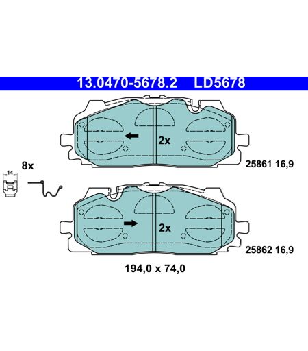 ATE Bremsbelagsatz, Scheibenbremse Verschleißwarnkontakt:für Verschleißwarnanzeiger vorbereitet Ergänzungsartikel/Ergänzende Info:mit Zubehör Bremssystem:Akebono Dicke/Stärke [mm]:16,9 mm Zulässig bis Fahrzeugleistung [kW]:225 kW Breite [mm]:194,0 mm Verschleißwarnkontakt:exkl. Verschleißwarnkontakt Höhe [mm]:74,0 mm Prüfzeichen:E1 90R-02A0577/0403 MAPP-Code vorhandenMenge 1 entspricht einem Satz (4 Bremsbeläge für links UND rechts) , u.a. für Audi Q7 (4MB, 4MG), 2967 cm³, 272 PS (200 kW), 1/2015 bis 12/2019, KBA-Nr: 0588BDMAudi Q7 (4MB, 4MG), 2967 cm³, 249 PS (183 kW), 6/2015 bis 12/2019Audi Q7 (4MB, 4MG), 2967 cm³, 218 PS (160 kW), 5/2015 bis 12/2019, KBA-Nr: 0588BEZAudi Q7 (4MB, 4MG), 1984 cm³, 252 PS (185 kW), ab 8/2015, KBA-Nr: 0588BGDAudi A4 B9 (8W2, 8WC), 1395 cm³, 150 PS (110 kW), 8/2015 bis 11/2019, KBA-Nr: 0588BFHAudi A4 B9 (8W2, 8WC), 1984 cm³, 190 PS (140 kW), ab 5/2015, KBA-Nr: 0588BFIAudi A4 B9 (8W2, 8WC), 1984 cm³, 252 PS (185 kW), 5/2015 bis 11/2019, KBA-Nr: 0588BFJAudi A4 B9 (8W2, 8WC), 1984 cm³, 252 PS (185 kW), ab 5/2015, KBA-Nr: 0588BFKAudi A4 B9 (8W2, 8WC), 1968 cm³, 190 PS (140 kW), ab 5/2015, KBA-Nr: 0588BFMAudi A4 B9 (8W2, 8WC), 1968 cm³, 190 PS (140 kW), ab 9/2015, KBA-Nr: 0588BFNAudi A4 B9 (8W2, 8WC), 1968 cm³, 150 PS (110 kW), 5/2015 bis 11/2019, KBA-Nr: 0588BFLAudi A4 B9 (8W2, 8WC), 2967 cm³, 218 PS (160 kW), 9/2015 bis 8/2018, KBA-Nr: 0588BFOAudi A4 B9 (8W2, 8WC), 2967 cm³, 218 PS (160 kW), 9/2015 bis 8/2018, KBA-Nr: 0588BFPAudi A4 B9 (8W2, 8WC), 2967 cm³, 272 PS (200 kW), 5/2015 bis 8/2018, KBA-Nr: 0588BFQAudi A4 B9 (8W5, 8WD), 1984 cm³, 190 PS (140 kW), ab 8/2015, KBA-Nr: 0588BFSAudi A4 B9 (8W5, 8WD), 1984 cm³, 252 PS (185 kW), 8/2015 bis 10/2019, KBA-Nr: 0588BFTAudi A4 B9 (8W5, 8WD), 1968 cm³, 190 PS (140 kW), 8/2015 bis 9/2018, KBA-Nr: 0588BFVAudi A4 B9 (8W5, 8WD), 1968 cm³, 190 PS (140 kW), 10/2015 bis 9/2018, KBA-Nr: 0588BFWAudi A4 B9 (8W5, 8WD), 1968 cm³, 150 PS (110 kW), 8/2015 bis 9/2018, KBA-Nr: 0588BFUAudi A4 B9 (8W5, 8WD), 2967 cm³, 218 PS (160 kW), 10/2015 bis 8/2018, KBA-Nr: 0588BFXAudi A4 B9 (8W5, 8WD), 2967 cm³, 218 PS (160 kW), 11/2015 bis 8/2018, KBA-Nr: 0588BFYAudi A4 B9 (8W5, 8WD), 2967 cm³, 272 PS (200 kW), 8/2015 bis 8/2018, KBA-Nr: 0588BFZAudi A4 B9 (8W2, 8WC), 1968 cm³, 136 PS (100 kW), 5/2015 bis 11/2019, KBA-Nr: 0588BGBAudi A4 B9 (8W2, 8WC), 1984 cm³, 249 PS (183 kW), 11/2015 bis 11/2019, KBA-Nr: 0588BGNAudi A4 B9 (8W2, 8WC), 1984 cm³, 249 PS (183 kW), 11/2015 bis 11/2019, KBA-Nr: 0588BGAAudi A4 B9 (8W5, 8WD), 1984 cm³, 249 PS (183 kW), ab 11/2015, KBA-Nr: 0588BGLAudi A4 B9 (8W5, 8WD), 1968 cm³, 136 PS (100 kW), 8/2015 bis 10/2019, KBA-Nr: 0588BGMAudi Q7 (4MB, 4MG), 2967 cm³, 211 PS (155 kW), 8/2015 bis 12/2019, KBA-Nr: 0588BGFAudi Q7 (4MB, 4MG), 2967 cm³, 258 PS (190 kW), 8/2015 bis 12/2019Audi A4 B9 (8W5, 8WD), 1395 cm³, 150 PS (110 kW), 2/2016 bis 10/2019, KBA-Nr: 0588BFRAudi A4 B9 (8W2, 8WC), 1968 cm³, 122 PS (90 kW), 5/2016 bis 11/2019, KBA-Nr: 0588BIFAudi A4 B9 (8W5, 8WD), 1968 cm³, 122... ...