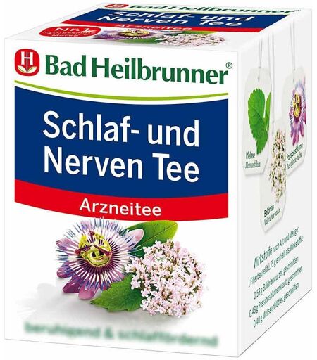 Anwendungsgebiet von Bad Heilbrunner Schlaf- und Nerven TeeMit Bad Heilbrunner Schlaf- und Nerven Tee tun Sie sich und Ihrem Körper etwas Gutes. Denn Bad Heilbrunner Schlaf- und Nerven Tee ist nicht nur wohltuend, sondern auch hilfreich bei Unruhezuständen und nervös bedingten Einschlafstörungen. Wirkungsweise von Bad Heilbrunner Schlaf- und Nerven TeeBad Heilbrunner Schlaf- und Nerven Tee mit Baldrianwurzel, Passionsblumenkraut, Melissenblätter und Schafgarbenkraut, sowie Süßholzwurzel wirken einschlaffördernd und entspannend auf Ihren Geist. Denn Bad Heilbrunner Schlaf- und Nerven Tee lindert Ihre Unruhezustände und nervös bedingte Einschlafstörungen. Wirkstoffe / Inhaltsstoffe / Zutaten1 Teebeutel von Bad Heilbrunner Schlaf- und Nerven Tee enthält: 0,525 g Baldrianwurzel, geschnitten, 0,480 g Passionsblumenkraut, geschnitten, 0,394 g Melissenblätter, geschnitten, Pfefferminzblätter, Schafgarbenkraut, Süßholzwurzel, Kamillenblüten, jeweils geschnittenGegenanzeigenBei bekannter Überempfindlichkeit gegenüber einem der oben genannten Inhaltsstoffe sollte das Produkt nicht verwendet werden. DosierungAnwendungsempfehlung von Bad Heilbrunner Schlaf- und Nerven Tee: Bereiten Sie Bad Heilbrunner Schlaf- und Nerven Tee mit 200 ml heißem Wasser zu. Lassen Sie Bad Heilbrunner Schlaf- und Nerven Tee ca. 5-8 Minuten ziehen. Hinweise1 Teebeutel von Bad Heilbrunner Schlaf- und Nerven Tee enthält: 7 kJ (2 kcal), davon: 0 g Fett, 0,4 g Kohlenhydrate (davon < 0,1 g Zucker), 0 g Eiweiß, 0 g Salz Bad Heilbrunner Schlaf- und Nerven Tee können in Ihrer Versandapotheke www.juvalis.de erworben werden. ...