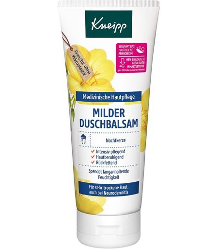 Anwendungsgebiet von Kneipp Milder Duschbalsam NachtkerzeMedizinische Hautpflege zur Reinigung und Pflege der Haut. Kneipp Milder Duschbalsam Nachtkerze eignet sich ebenfalls als Basispflege bei Neurodermitis.Wirkungsweise von Kneipp Milder Duschbalsam NachtkerzeDer sanfte und feuchtigkeitsspendende Duschbalsam bewahrt das hauteigene Mikrobiom und die natürliche Barrierefunktion sehr trockener und gereizter Haut.
