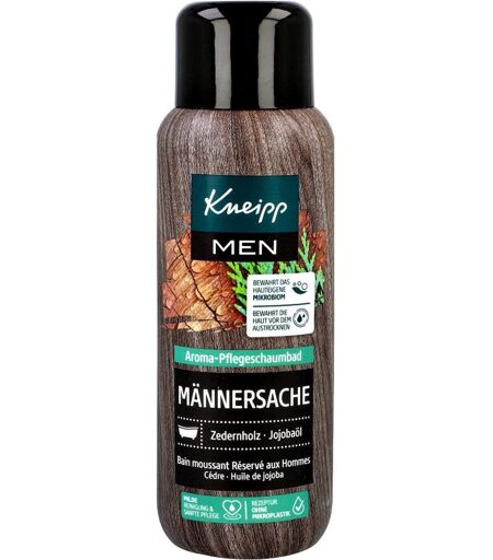 Anwendungsgebiet von Kneipp Aroma Pflegeschaumbad MännersacheKneipp Aroma Pflegeschaumbad Männersache speziell für den Mann entwickelt mit dem kräftig herben Duft von frischem Zedernholz verbreitet eine natürliche aromatische Note, wertvolles Jojobaöl schützt die Haut vor dem Austrocknen.Wirkungsweise von Kneipp Aroma Pflegeschaumbad MännersacheGönnen Sie sich mit Kneipp Aroma Pflegeschaumbad Männersache das Zusammenspiel von maskulinem Duft, intensiver Farbe und langanhaltendem Schaum - ein Erlebnis für die Sinne. Kneipp Aroma Pflegeschaumbad Männersache als natürliches pflegendes Öl schützt die Haut vor dem Austrocknen.Wirkstoffe / Inhaltsstoffe / ZutatenKneipp Aroma Pflegeschaumbad Männersache enthält: