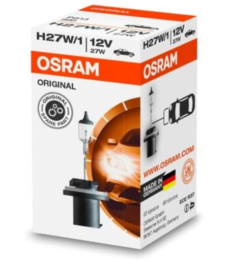 Art der Glühlampe: H27W1. Hersteller: OSRAM. Herstellernummer: 880. Index: OSR880-. Lampentyp: Halogen. Linie: Standard. Nennleistung [W]: 27. Spannung [V]: 12. Steckdosentyp: PG13. Stückzahl : 1. Verpackung: Karton. ...