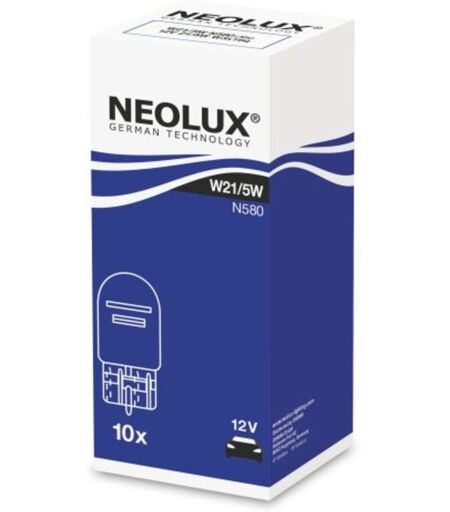 Art der Glühlampe: W21/5W. Hersteller: NEOLUX. Herstellernummer: NLX580 K10SZT. Index: NLX580 K10SZT. Lampentyp: Sekundär. Nennleistung [W]: 5/21. Spannung [V]: 12. Steckdosentyp: W3X16Q. Stückzahl : 10. Verpackung: Karton. ...