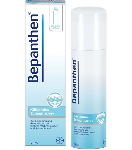 Bepanthen® Kühlendes Schaumspray lindert leichte Verbrennungen und Sonnenbrand. Es erzeugt einen leichten Schaumfilm auf der geröteten Haut und wirkt angenehm kühlend. Zudem wird die Haut nachhaltig mit Feuchtigkeit versorgt und so der natürliche Heilungsprozess der Haut gefördert. Die innovative Nanosorb™-Technologie, welche die Inhaltsstoffe in Form winziger Tröpfchen bereitstellt, intensiviert und verbessert den Kontakt mit der Haut. Der Schaum zieht von alleine ein und muss nicht in die Haut einmassiert werden, dadurch wird diese nicht zusätzlich gereizt. Anwendung Kühlen Sie die betroffene Hautpartie für einige Minuten unter fließendem kaltem Wasser. (Achtung: Bei Sonnenbrand bitte Bepanthen® Kühlendes Schaumspray direkt aufsprühen!) Schütteln Sie die Dose kräftig und sprühen Sie aus 2-5 cm Abstand Bepanthen® Kühlendes Schaumspray auf die betroffene Zone, bis sie mit einem dünnen Schaumfilm bedeckt ist. Verreiben Sie den Schaum nicht, sondern warten Sie einfach ab. Dank der innovativen Nanosorb™-Technologie zieht Bepanthen® Kühlendes Schaumspray rasch in die Haut ein. Bei Bedarf können Sie die Anwendung wiederholen. Da der Schaumfilm nicht eingerieben werden muss, ist das Auftragen schmerzfrei und es entstehen keine zusätzlichen Reizungen. Inhaltsstoffe Neben wichtigen Hautfetten enthält Bepanthen® Kühlendes Schaumspray vor allem den natürlichen Feuchthaltefaktor Dexpanthenol. Dieser hilft der Haut, sich zu regenerieren. Dank der innovativen Nanosorb™-Technologie gelangen die Inhaltsstoffe in mikroskopisch kleinen Tröpfchen auf die Haut. Das intensiviert den Kontakt und verbessert die Wirkung. Bepanthen® Kühlendes Schaumspray ist frei von Farb- und Duftstoffen. ...
