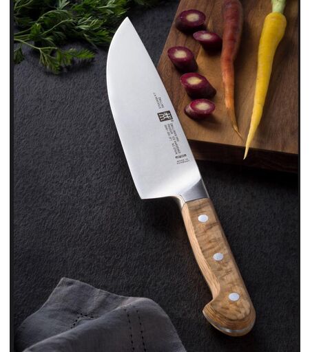 ZWILLING Kochmesser »Pro Wood« Farbe: Klinge silberfarben Griff Steineiche naturfarben Material: Klinge Spezialstahl (ZWILLING® Sonderschmelze) Griff Steineichenholz Maße: B x H x T ca. 33 x 2 x 5 cm Klingenlänge ca. 20 cm Gewicht: Ca. 250 g Sonstige Hinweise: Lieferung per Paketdienst bis zum Haus Hersteller-Artikel-Nummer: 1002909 Hersteller: ZWILLING J.A. Henckels Europa GmbH, Grünewalder Strasse 14-22, 42657 Solingen, Deutschland E-Mail: service.de.tchibo@zwilling.com Klinge aus rostfreiem Spezialstahl der Sorte SonderschmelzeIdeal zum Schneiden von Fleisch, Fisch und Gemüse sowie zum Hacken von KräuternMesser mit ergonomischem Drei-Nieten-SteineichenholzgriffKlingenlänge ca. 20 cmEisengehärtete Klinge ermöglicht leichtes Schneiden von größeren LebensmittelnLanglebig und korrosionsbeständig ...