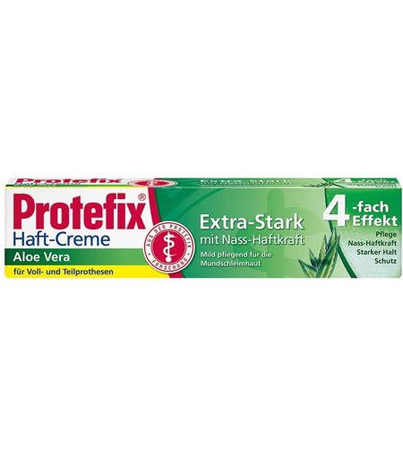 Anwendungsgebiet von Protefix Haftcreme Aloe VeraDie Protefix Haftcreme Aloe Vera aus Ihrer Versandapotheke wird zum Auftragen auf Zahn-Prothesen verwendet. Bei vielen Haftproblemen (z.B. starker Speichelfluss) bietet die Protefix Haftcreme Aloe Vera schnell Abhilfe. Die Protefix Haftcreme Aloe Vera lässt sich einfach auftragen, ist geschmacksneutral und führt zu keiner unangenehmen Geschmacks-Veränderung von Speisen und Getränken. Dank der ultimativen Langzeit-Wirkung können Sie sich sicher und unabhängig durch den Alltag bewegen. Zusätzlich enthält die Protefix Haftcreme Aloe Vera einen natürlichen Pflegekomplex, der aus der Aloe Vera Pflanze gewonnen wird.Wirkungsweise von Protefix Haftcreme Aloe VeraDie Protefix Haftcreme Aloe Vera zeichnet sich besonders dadurch aus, dass sie direkt auf die feuchte Prothese aufgetragen wird. Das hat den Vorteil, dass die starke Nass-Haftkraft sofort wirksam wird. Die wirkungsvolle Randabdichtung hilft, das Eindringen von Speiseresten zu verhindern. Außerdem besitzt die Protefix Haftcreme Aloe Vera eine Fülle bioaktiver Vitalstoffe aus der Aloe Vera Pflanze, die sowohl hautpflegend als auch regenerierend wirken.Wirkstoffe / Inhaltsstoffe / ZutatenInhaltsstoffe von Protefix Haftcreme Aloe Vera: Gemisch der Natrium-/Calciumsalze des Copolymers aus Methyl-Vinyl-Ether und Maleinsäureanhydrid, Carboxymethylcellulose, Paraffin, Vaseline, Aloe Vera Barbadensis Miller, Siliciumdioxid, Menthol, Azorubin, Methyl-4-hydroxybenzoat GegenanzeigenBei Überempfindlichkeit gegenüber einen der oben genannten Inhaltsstoffe sollte das Produkt nicht angewendet werden. In Einzelfällen kann es zu Überempfindlichkeitsreaktionen an der Mundschleimhaut oder auch des Gesamtorganismus kommen. Das Produkt sollte nur auf gesunder Mundschleimhaut angewandt werden.DosierungReinigen Sie Prothese und Mundschleimhaut von Rückständen. Verwenden Sie die Protefix Haftcreme Aloe Vera sparsam, da bei einer Überdosierung die Haftung ...
