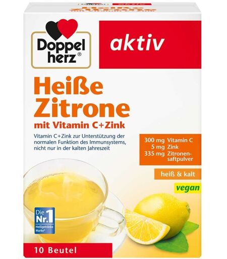 Anwendungsgebiet von Doppelherz Heisse Zitrone Vitamin C + Zink GranulaDie Doppelherz Heisse Zitrone Vitamin C + Zink Granula unterstützen die normale Funktion Ihres Immunsystems und fördern Ihre körpereigene Abwehr durch das Plus an Vitamin C und Zink.Wirkungsweise von Doppelherz Heisse Zitrone Vitamin C + Zink GranulaNicht nur in der kalten Jahreszeit, sondern auch im Sommer ist Ihr Immunsystem Tag für Tag in Arbeit und wird gefordert. Um besondere Situationen, in denen der Stress und die Hektik zu nehmen, Stand zu halten, muss Ihr Immunsystem Höchstleistung vollbringen. Dabei ist eine natürliche und zusätzliche Einnahme an Vitamin C und Zink hilfreich. Die Doppelherz Heisse Zitrone Vitamin C + Zink Granula sind wohlschmeckend fruchtig und einfach in der Zubereitung. Durch die Unterstützung in der normalen Funktion Ihres Immunsystems, sind Doppelherz Heisse Zitrone Vitamin C + Zink Granula ideal. Das Vitamin C und Zink fördern die normalen Funktion Ihres Immunsystems. Zusätzlich werden Ihre Zellen vor oxidativen Stress geschützt und bewahrt. Mit Doppelherz Heisse Zitrone Vitamin C + Zink Granula unterstützen Sie Ihren Körper und leisten einen wichtigen Beitrag für Ihre Leistungsfähigkeit. Doppelherz Heisse Zitrone Vitamin C + Zink Granula wärmen Sie im Winter von Innen und wirken wohltuend. Sie können Doppelherz Heisse Zitrone Vitamin C + Zink Granula aber auch im Sommer als erfrischendes Kaltgetränk genießen. Doppelherz Heisse Zitrone Vitamin C + Zink Granula liefern Ihnen bereits mit einem Portionsbeutel: 1200 mg Zitronenfruchtpulver in Kombination mit 300 mg Vitamin C und 5 mg Zink. Wirkstoffe / Inhaltsstoffe / ZutatenZutaten von Doppelherz Heisse Zitrone Vitamin C + Zink Granula: Zucker, Dextrose, Maltodextrin, Säuerungsmittel Citronensäure, Zitronensaftpulver 2,2 %, L-Ascorbinsäure, natürliches Citrusaroma, Palmöl, Zinksulfat, Farbstoff Riboflavin-5'-phosphat Zusammensetzungpro Tages ...