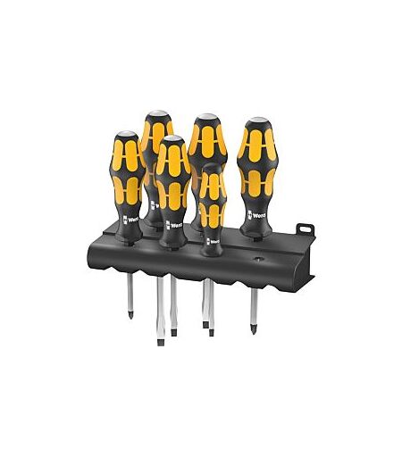 Wera Schraubendreher-Satz 4013288018090Schraubendreher-SatzNr. 932/6Schraubmeißel6-kant-KlingedurchgehendSchlagkappeHochwertiges Bit-MaterialBlack-Point-SpitzeKraftform-Griff6-kant-AbrollschutzZum SchraubenMeißeln und StemmenLieferung: Im KartonPH 1 x 80/2 x 100 mm) 4 Schlitz-Schraubendreher (0,6 x 3,5 x 80, 0,8 x 4,5 x 90, 1 x 5,5 x 100, 1,2 x 7 x 125 mm Rack 6 TeileKein Lasertip. Keine durchgehende 6-kant-KlingeSchlagkappe und Schlüsselhilfe. ...