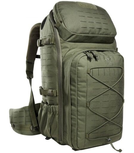 Der Tasmanian Tiger Modular Trooper Pack hat dank seiner Lasercut MOLLE Schlaufen ein cleanes, aufgeräumtes Design und bietet trotzdem bei Bedarf die Möglichkeit, vielseitige Zubehörtaschen außen wie innen anzubringen. Über ein geschicktes Reißverschlussdesign kann der Tasmanian Tiger Modular Trooper Pack dabei wie ein Toploader bepackt oder komplett wie ein Koffer geöffnet werden, um den gesamten Inhalt auf einen Blick zu sehen. Das Hauptfach bringt dabei 45 Liter, die obere Tasche 2 Liter und die frontale Tasche noch einmal 8 Liter Volumen mit. Für den äußeren Zugriff sind zudem zwei Seitentaschen und ein Kordelzugsystem auf der Frontseite eingearbeitet. Die große Fronttasche lässt sich ebenso wie das Hauptfach komplett bis unten hin öffnen, sodass du nicht lange nach der gesuchten Ausrüstung kramen musst. Auch die Kleinigkeiten des Outdoor- und Bushcrafter-Alltags lassen sich in den zahlreichen Fächern im Deckel übersichtlich unterbringen. Damit du deine Ausrüstung bequem im Tasmanian Tiger Modular Trooper Pack tragen kannst, hat er ein gut gepolstertes V2 Plus Tragesystem erhalten. Dieses Tragesystem ist mehrschichtig gepolstert, höhenverstellbar und mit einem abnehmbaren Hüftgurt ausgestattet, der dank seiner MOLLE Schlaufen auch mit Taschen ausgestattet als Warrior Belt oder "Kampfgürtel" getragen werden kann. Zu guter Letzt bringt der Tasmanian Tiger Modular Trooper Pack auch seine eigene Regenhülle schon im Bodenfach mit. So kannst du im Tasmanian Tiger Modular Trooper Pack deine Ausrüstung perfekt sortieren und dir mit modularen Zusatztaschen dein individuelles Packvolumen zusammenstellen. Das hochwertige Tragesystem verteilt anschließend die Last weg von den Schultern auf Beine und Hüfte, sodass der Rucksack nicht nur für kurze Trips, sondern auch für die Langstreckentouren geeignet ist. ...