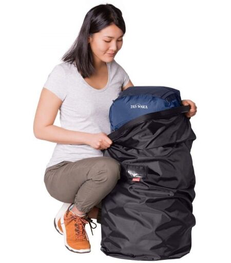 Der Tatonka Schutzsack Universal eignet sich für Rucksäcke mit einer Größe bis zu 85 Liter, wobei du bei kleineren Modellen einfach den Rollverschluss so weit nach unten rollen kannst, bis die passende Größe erreicht ist. Ein kleines Sichtfenster eignet sich perfekt, um deine Adresse und Kontaktdaten sichtbar am Tatonka Schutzsack Universal anzubringen. Der verschlossene Rollverschluss dient praktischerweise gleich auch als Griff und das robuste Material mit 200 D Stärke und dreifacher PU-Beschichtung ist äußerst widerstandsfähig. So bekommst du mit dem Tatonka Schutzsack Universal einen praktischen Transportschutz, der vor allem bei der Gepäckabgabe am Flughafen, aber auch bei anderen Gepäckfächern dafür sorgt, dass sich keine Gurtbänder verhaken oder das Material verschmutzt wird. ...