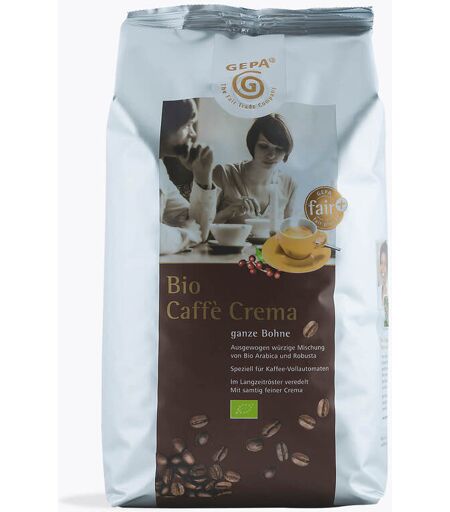 en Kaffees. Der im Vergleich zu vielen anderen Kaffees hohe Robusta-Bohnenanteil sorgt für eine sehr gute Ergiebigkeit und einen langen Kaffeegenuss. Gekrönt wird der köstliche Kaffee durch eine feine Crema. Die Bohnenmischung von GEPA ist speziell für Vollautomaten und Siebträgermaschinen geeignet. ...