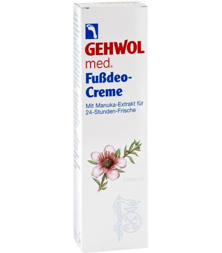 Anwendungsgebiet von Gehwol med Fussdeo-cremeGehwol med Fussdeo-creme unterstützt durch seine Wirkstoffkombination nachhaltig Ihre Fusshygiene: 24-Stunden-Frische durch einen hochkonzentrierten Wirkstoff-Extrakt des Manuka-Öls mikronisiertes Zinkoxid mit antimikrobieller Wirkung zur Beseitigung von Fussgeruch und Pflege der Haut pflegende Cremegrundlage mit Jojoba-Öl und Aloe Vera mehrfach ungesättigte Fettsäuren unterstützen die natürlichen Hautfunktionen Das Ergebnis regelmäßiger Anwendungen der Gehwol med Fussdeo-creme sind geruchlose Füsse, eine geschmeidige Fusshaut und ein effektiver Schutz vor Fusspilz.Wirkungsweise von Gehwol med Fussdeo-cremeGehwol med Fussdeo-creme enthält einen hochkonzentrierten Manuka-Extrakt und mikronisiertes Zinkoxid. Beide Inhaltsstoffe bekämpfen wirkungsvoll geruchsbildende Keime und Bakterien und dadurch zuverlässig für bis zu 24 Stunden den Fussgeruch. Die Cremegrundlage der Gehwol med Fussdeo-creme bilden pflegendes Jojoba-Öl und Aloe Vera Gel. Sie regenerieren die Hautbarriere, hemmen Entzündungen und regulieren den Feuchtigkeitshaushalt. Wertvolle, mehrfach ungesättigte Fettsäuren unterstützten zusätzlich die natürlichen Hautfunktionen.Wirkstoffe / Inhaltsstoffe / ZutatenInhaltsstoffe der Gehwol med Fussdeo-creme: (RS)-2-(4-tert-Butylbenzyl) propionaldehyd (RS)-2-Octyldodecan-1-ol 2-Phenoxyethanol Aloe vera Gel alpha-Hexylzimtaldehyd alpha-Methylionone Butyl-4-hydroxybenzoat Cetylalkohol Citronellol Climbazol Decamethylcyclopentasiloxan Dimeticon D-Limonen Ethyl-4-hydroxybenzoat Glycerolmonostearat Imidurea Isobutyl-4-hydroxybenzoat Isopropylpalmitat flüssiges Jojobawachs Linalool Manukablätter-Extrakt Methyl-4-hydroxybenzoat Parfüm Polyglyceryl-3-methylglucosedistearat Propyl-4-hydroxybenzoat Propylenglycol gereinigtes Wasser ZinkoxidGegenanzeigenBei bekannter Überempfindlichkeit gegen einen der oben genannten Inhaltsstoffe so ...