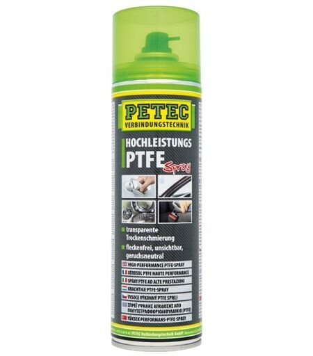 PETEC PTFE-Spray (500 ml) Dieses hochleistungs PTFE-Spray ist ein farbloses Schmier-, Trenn- & Gleitmittel. Hervorragend geeignet für sichtbare Schmierarbeiten wie z. B. Sitzlaufschiene, Gurt, Türfangband, Schloss, quietschende Seitenscheiben, Türgummis u.v.m. Für Anwendungen im Bereich Automobil, Schifffahrt, Bau- und Landmaschinen sowie Industrie und Handwerk. Eigenschaften: fleckenfrei, unsichtbar, geruchsneutral für alle Materialien geeignet nicht elektrisch leitend hehitzebeständig: bis +260°C Inhalt: 500 mlFarbe:weiß-transparent chem. Eigenschaft:G12++ Montageinformation beachten chem. Eigenschaft:Langzeitschutz Temperaturbereich von [°C]:-190 °C Mengeneinheit:Milliliter Inhalt [ml]:500 ml Technische Daten beachten chem. Eigenschaft:wasserabweisend chem. Eigenschaft:temperaturbeständig Temperaturbereich bis [°C]:+260 °C Gebindeart:Sprühdose chem. Eigenschaft:silikonhaltig , OE-Nummer:PRESTO:306338MAPCO:17987LIQUI MOLY:3076LIQUI MOLY:7384SONAX:04863000PRESTO:429972PRESTO:279911 ...