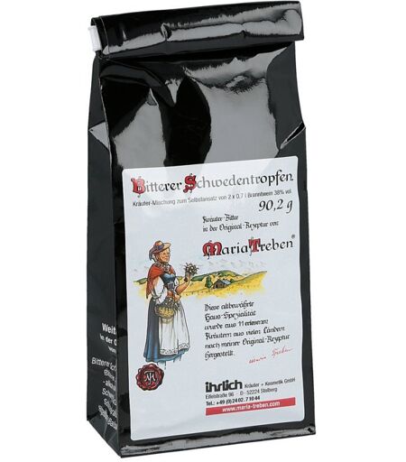 Anwendungsgebiet von Maria Treben Kleiner Schwedenbitter Ansatzm.Maria Treben Kleiner Schwedenbitter Ansatzm. ist ein wohlschmeckendes, verdauungsförderndes, appetitanregendes und mild wirkendes Kräuterelixier. Es stammt ursprünglich von dem schwedischen Arzt Dr. Samst, der 104 Jahre alt wurde. Nach seinem Tod wurde diese Kräutermischung von Maria Treben, der bekannten Kräuterspezialistin, wiederentdeckt und weltbekannt gemacht. Wirkungsweise von Maria Treben Kleiner Schwedenbitter Ansatzm.Unsere gängigen Nahrungsmittel sind heute fast völlig bitterfrei gezüchtet. Bitterstoffe, wie sie früher mit vielen Salaten, Gemüsen, Wurzeln und Kräutern verzehrt worden sind, nehmen wir heute nicht mehr zu uns. Gerade diese Bitterstoffe haben über Jahrtausende als natürliche Fatburner gewirkt. Maria Treben Kleiner Schwedenbitter Ansatzm. ersetzen die großen Defizite an bitteren Substanzen in unserer Ernährung.