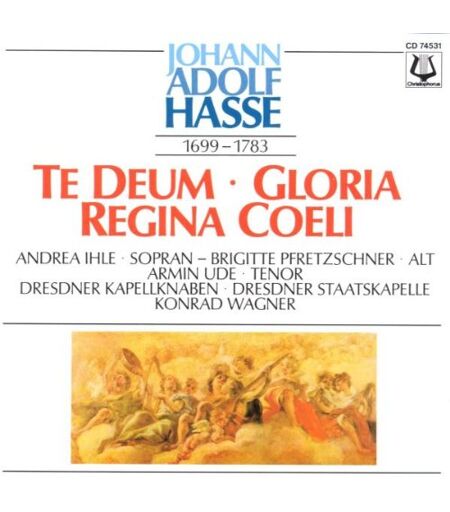 Binding : Audio CD, Label : Christopho (Note 1 Musikvertrieb), Publisher : Christopho (Note 1 Musikvertrieb), NumberOfDiscs : 1, medium : Audio CD, releaseDate : 1991-01-01, artists : Dresdner Kapellknaben, Andrea Ihle, Brigitte Pfretzschner, Armin Ude, composers : Johann Adolf Hasse, conductors : Konrad Wagner ...