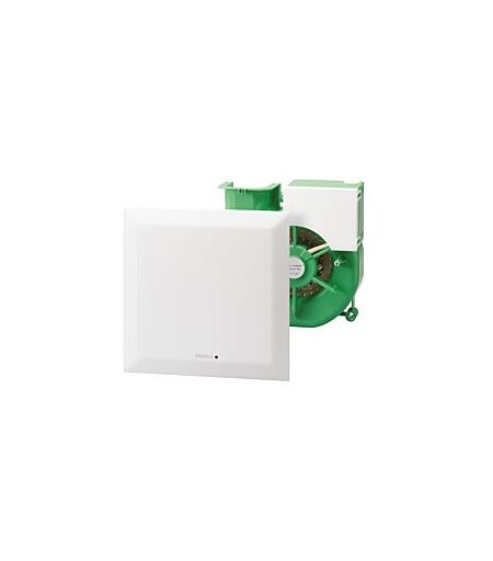 Helios Ventilator ELS-VN 60/35 8139, Helios Ventilator mit eingebautem Nachlaufschalter, 2 Stufenregelung, weiss, Volumenstrom 60/35 m3/h, Artikelnummer: 8139. ELS-VN 60/35 Ventilatoreinsatz mit Fassade, Nachlauf und 2 Leistungsstufen V = 60/35 cbm/h. Ventilator-Einsatz mit 2 Leistungsstufen (60/35 m3/h) für Bedarfs- und Grundlüftung mit integriertem Nachlauf, Nachlaufzeit auf ca. 6, 15, 21 Min. einstellbar, Anlaufverzögerung ca. 45 Sek. (fest eingestellt). Betriebsbereite Lieferung mit flacher Innenfassade (alpinweiß) und ultraSilence® Technologie. Serienmäßig mit Dauerfilter und Filterreinigungsanzeige. Integrierte Steckverbindung, für elektrischen Anschluss. Schutzisoliert, Klasse II, IP 55. Für Installation im Bereich 1 von Nassräumen. Wartungsfreier, kugelgelagerter Energiesparmotor 230 V~, 50 Hz, 18/9 W. Schallleistung 39/30 dB (A), Schalldruck 35/26 dB(A).* * bei AL = 10 m2 äquivalenter Absorptionsfläche in Kombination mit Gehäusetype ELS-GU, Ausblas seitlich. Angabe nach DIN 18017, T.3, Ausgabe 1990, Ziff. 6.2.4. Fußnote 3. Zur Lüftung von kleinen Räumen (Dusche, Bad, WC) mit hoher Luftbelastung. Die kleine Leistungsstufe kann für Dauerbetrieb angeschlossen werden. Große Stufe wird dann manuell über Lichtschalter gesteuert. Manuelle Steuerung beider Stufen mit Schalter DSEL 2 möglich. Nachlauffunktion mittels Zubehör möglich. Der integrierte Nachlauf bewirkt verlängerten Betrieb auf hoher Leistungsstufe nach manuellem Ausschalte. Nachlaufzeit: 15, Volumenstrom ca. m3/h: 60/35, Leistungsaufnahme ca. Watt: 18/9 Schalldruckpegel 1) ca. dB(A) bei 10 m² äquivalenter Absorptionsfläche: 35/26, Schallleistungspegel 1) LWA ca. dB(A): 39/30, Elektrischer Anschluss: 230 V~, 50Hz Elektrische Zuleitung in mm²: NYM-O 4 x 1,5, Schutzklasse II ohne PE, Anschluss nach Schaltplan-Nr.: SS-877, Alle Leistungs- und Geräuschangaben nach DIN 24163, DIN 24166, DIN 45635, DIN 44974 1) in Kombination mit Gehäusetype ELS-GU, Ausblas seitlich. ...