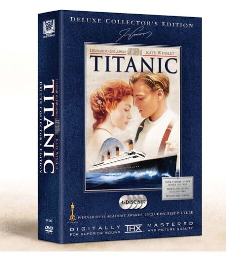 AspectRatio : 2.35 : 1, AudienceRating : Freigegeben ab 12 Jahren, Brand : FOX, Binding : DVD, Label : Twentieth Century Fox Home Entert., Publisher : Twentieth Century Fox Home Entert., NumberOfDiscs : 4, RegionCode : 2, NumberOfItems : 4, Format : Collector's Edition, Feature : FSK 12, medium : DVD, publicationDate : 2005-12-01, releaseDate : 2005-12-01, runningTime : 186 minutes, theatricalReleaseDate : 1999-09-02, actors : Leonardo DiCaprio, Billy Zane, Kate Winslet, Kathy Bates, Bernard Hill, directors : James Cameron ...
