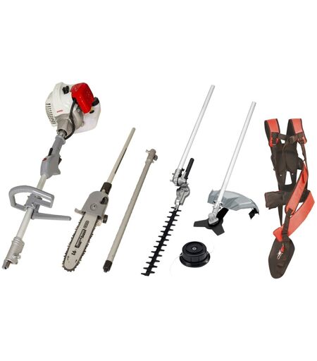 Ikra Benzin Multitool IBMT 52 Produktnummer: 0687080043 IKRA Benzin Kombi-Gartengerät IBMT 52 4 in 1 Gerät mit 2-Takt-Benzinmotor mit Leichtstartsystem - nutzbar als Rasentrimmer, Freischneider, Entaster und Teleskop Heckenschere, Trimmer- und Freischneideraufsatz inklusiv Fadenspule mit Tippautomatik und 3-Zahn-Messerscheibe, mit innovativem Grasverwicklungsschutz, Hochentaster Kettensägenaufsatz mit OREGON Markenschwert und variable Höheneinstellung, Heckenscherenaufsatz zum Schneiden von höheren Hecken, inklusive Doppel-Schultergurt. Rasentrimmer (Spule & Faden): Doppelfaden, 2 x 2,0 m, ø 2,4 mm Fadenverlängerung durch Tippautomatik Schnittbreite 42 cm zum Schneiden von Gras und nicht holzigen Pflanzen innovativer Schneidkopf mit Grasverwicklungsschutz Freischneider (Messer): 3-Zahn-Dickichtmesser ideal zum Trimmen von "robusteren Pflanzen", z.B. Brennnesseln oder Disteln Schnittkreis 25,5 cm zum Schneiden von hohem Gras, kleinen Ästen und holzigem Unkraut bis 2 cm Durchmesser Entaster (Kette und Schwert): Markenschwert und Kette von OREGON für sichere Kettenführung und hohe Schnittleistung vibrationsarme Kette (Antivibrationskette) Kettensägenaufsatz mit Winkelverstellung für flexibles und ergonomisches Schneiden Schnittlänge 255 mm automatische Kettenschmierung milchiger, durchsichtiger Ölbehälter zum schnellen Erkennen des Ölstandes (Öltank 120ml) Heckenschere (Messer und Schnittleistung): Schnittlänge: 395 00 Schnittstärke: 23 mm gegenläufige und gehärtete Präzisionsmesser Leistung: 1,5 kW/2,0 PS Motor: 2-Takt-Motor/51,7 cm³ Motordrehzahl max: 9600 min-1 Leerlaufdrehzahl: 3000 ± 400 min-1 Tankinhalt: 1300 ml Gewicht (ohne Kraftstoff, Schneidvorrichtungen und Gurt): 5,5 kg Herstellerinformationen: ikra GmbH Schlesier Straße 36 64839 Münster-Altheim, Deutschland eMail: info@ikra.de Herstellernr. 68100002 ...