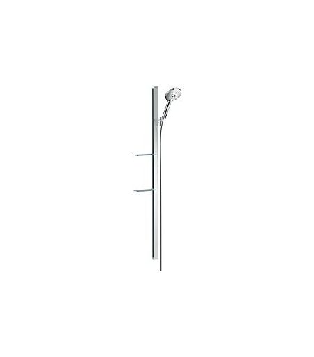 Hansgrohe Raindance Select S120 BrauseSet 27646000 Artikelnummer 27646000 Ablage aus Sicherheitsglas Strahlart: Rain, RainAir (mit Luft angereicherter Regenstrahl), WhirlAir (Massagestrahl) komfortable Strahlartenumstellung durch Select-Taste Brausekopfgröße: 125 mm Neigungswinkel um 90° verstellbar, Schieber schwenkt nach links und rechts sowie oben und unten maximale Durchflussmenge (bei 3 bar): 15 l/min 41 mm breite Stange 2x Casetta' E Seifenschale Wandstützen aus Kunststoff Brausestangentyp: flaches Aluminiumprofil mit Blende aus Sicherheitsglas ...