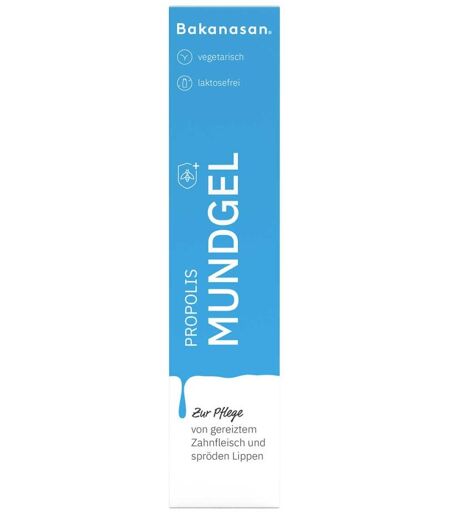 Anwendungsgebiet von Bakanasan Propolis MundgelBakanasan Propolis Mundgel ist eine Pflege für das Zahnfleisch und die Lippen. Auch Schleimhautreizungen, die durch das das Tragen von Zahnspangen oder Zahnprothesen entstehen und Bläschen oder Schrunden hervorrufen, klingen mit Hilfe von Bakanasan Propolis Mundgel ab. Wirkungsweise von Bakanasan Propolis MundgelDank Bakanasan Propolis Mundgel werden rissige Mundwinkel geglättet und spröde Lippen geschmeidig. Das in Bakanasan Propolis Mundgel enthaltene Propolis, ein hochwertiger Schutzharz der Bienen, verfügt über keimhemmende und entzündungsvorbeugende Eigenschaften, die speziell für die Mund- und Zahnpflege von Bedeutung sind. Myrrhe, Salbei und Kamille aus kontrolliert biologischem Anbau unterstützen die wohltuende Wirkung von Propolis.