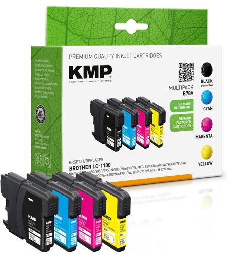 KMP Druckerpatronen B78V schwarz, cyan, magenta, gelb kompatibel zu brother LC-1100VALBP, 4er-Set 1522,4805