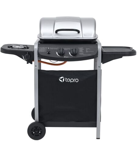 Tepro Gasgrill Fremont Produktnummer: 0691403835 Erste Sonnenstrahlen laden ein, im Freien zu kochen und zu essen. Doch nicht nur der Sommer bildet die Kulisse für schöne Grillabende. Mittlerweile ist es ein Ganzjahres-Event, wenn der Grillspaß erst einmal entdeckt wurde. Gasgrills bilden im "Outdoor Cooking" einen Mittelpunkt und somit heißt es, genießen und entspannen mit der richtigen Technik. Der "Fremont" zeichnet sich durch seinen Seitenkocher aus, der das Zubereiten von Soßen und Beilagen im Handumdrehen ermöglicht. Neben dem zusätzlichen Kocher besticht der "Fremont" durch die typischen Eigenschaften eines Gasgrills. Die gut regulierbare Hitze ist schnell vorhanden und der Grill ist in kurzer Zeit einsatzbereit. Das Grillen für viele Personen kann ohne lästige Pausen ermöglicht werden. Bei jedem Grillgut kann ein optimales Ergebnis erreicht werden, denn der Doppelbrenner des Gasgrills ist getrennt regelbar. Der zweigeteilte Grill ermöglicht das Schließen des Grillbereiches mit dem Vorteil, dass die Hitze nicht so leicht nach oben entweichen kann. Somit gibt der Deckel die gebündelte Hitze im Inneren an die Grillware ab. Ähnlich wie beim Umluftherd wird das Grillgut bei diesem Vorgang von allen Seiten gleichmäßig gegart. Besonderes Highlight ist die zusätzliche Ablagefläche. Sie bieten dem Grillmeister genug Platz um Grillutensilien wie Grillgut oder Gewürze abzustellen. Durch die vorhandenen Räder kann der "Fremont" schnell überall im Garten oder auf der Terrasse zum Einsatz gebracht werden. Der Grillspaß bleibt auch nach dem Ende des Grillabends bestehen. Schnell und einfach ist der Gasgrill gesäubert. Die emaillierte Beschichtung des Grillrostes und die nicht vorhandene Asche beim Gasgrill macht das Putzen mühelos. Der "Fremont" ist somit ideal geeignet für kulinarische und entspannte Geselligkeit. Neue und interessante Gerichte lassen sich gemütlich zubereiten und werden Ihre Gäste begeistern. 1 Doppelbrenner aluminiumbeschichtet, je ca. 2,35 kW 1 Seitenbrenner aluminiumbeschichtet, ca. 2,3 kW Gesamtleistung max. 7 kW Grillfläche: ca. 45 x 34 cm Maße aufgebaut: ca. 112 cm x 52 cm x 96,5 cm (BxTxH) Farbe: schwarz/silber 1 emaillierter Grillrost Grillfläche mit herausnehmbarem Grillrosteinsatz emaillierte Flammschutzplatte silber lackierter Deckel mit Kunststoffgriff 1 Kunststoff-Seitenablage, abklappbar lackierte Feuerwanne lackiertes Frontpaneel 4 silber lackierte Standbeine lackiertes Bodengitter schwarze Stoffverblendung 2 Kunststoffräder Arbeitshöhe ca. 80 cm Piezo-Zündung inkl. Schlauch und Regler Herstellerinformationen: Test Rite tepro GmbH Carl-Zeiss-Str. 8/4 63322 Rödermark, Deutschland eMail: service@testritepro.de Herstellernr. 3157 ...
