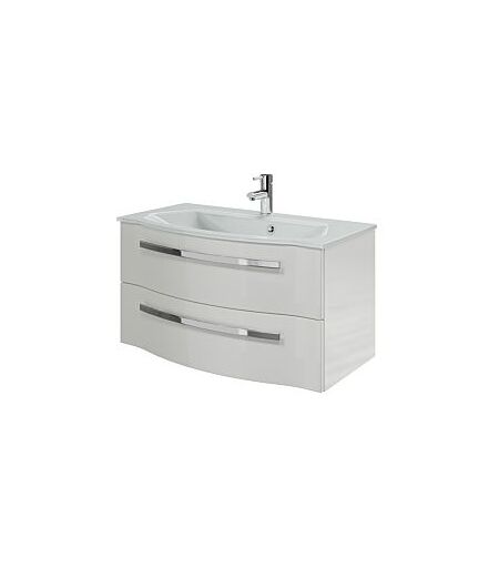 Pelipal Serie 4005 Waschtisch-Set 9.920.900.011 Lack-Polarweiß-Hochglanz/Weiß-Hochglanz-Select, Griffe chrom, 2 Auszüge, 90 x 48,2 x 48,1 cm