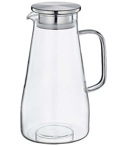 Glasklar: Die Wasserkaraffe EMILIA von cilio gehört auf jeden Tisch. Mit ihr genießen Sie Wasser, Tee und Säfte stilvoll, und beim Brunch oder BBQ sitzen Ihre Gäste garantiert nicht auf dem Trockenen. Die Karaffe ist aus robustem Borosilikatglas gefertigt, das den Geschmack Ihrer Getränke nicht beeinflusst und sich einfach reinigen lässt. Der Deckel mit Gummidichtung hält Insekten ab und verfügt über einen Ausgießer und ein integriertes Sieb, so dass lose Früchte oder Eiswürfel garantiert nicht im Glas landen. mit Filter im Deckel tropffreies Einschenken Inhalt: 1,6 L Höhe: 22,5 cm - Ø: 12,5 cm Gewicht: 0,34 kg Material: Glas, Edelstahl ...