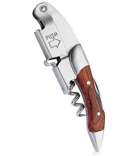 Material: Edelstahl satiniert kombiniert mit Holz 3 Funktionen: Kapselheber, Kapselschneider zweistufiger Korkenzieher für besonders leichtes Öffnen der Flasche kombiniert Maße: Länge 12cm ...