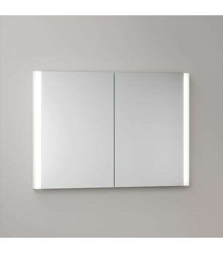 KEUCO Royal Atlas LED Spiegelschrank 100 x 71 x 11,5 cm mit 2 Türen, Unterputz, 211201450102 Eigenschaften: Wandeinbau-Montage 2 Drehtüren aus Kristall-Doppelspiegel mit Anschlagsdämpfung griffloses Design (Griffe auf Wunsch separat bestellbar) Korpus: Aluminium Korpusseite: Weiß-matt Korpusrückwand: HDF (weiß) 1 innenliegende Steckdose (Typ F) 3 höhenverstellbare Glasablagen (zusätzliche Ablagen separat bestellbar) erstklassige Qualität und Verarbeitung Made in Germany Bedienung: Bedienfeld mit kapazitiver Touch-Sensorik Ein-/Ausschalten über wahlweise über Bedienfeld oder Raumschalter möglich Beleuchtung: vertikale Beleuchtung Innenraumbeleuchtung Helligkeit: stufenlos dimmbar Lichtfarbe: 3000 Kelvin (warmweiß) Leuchtmittel: LED (Lebensdauer > 30.000 Stunden) Technische Daten: Leistungsaufnahme LEDs: 25 Watt Schutzart: ausstehend Anschluss: 220-240 V, 50/60 Hz Tiefe vor der Wand: 6 cm Abmessungen (BxHxT): 100 x 71 x 11,5 cm Hinweise: 3 Jahre Garantie (zusätzlich zur gesetzlichen Gewährleistung von 2 Jahren) 10 Jahre Ersatzteilversorgung Austausch der LED-Streifen mit Steckverbindungen durch Fachhandwerker kein Einbaurahmen nötig Wandausschnitt: B: 98,8-99,6 H: 69,6-70 T: min. 6,8 cm Lieferumfang: Spiegelschrank, Befestigung, Inneneinteilung, Leuchtmittel weitere Details: Breite:100cm Höhe:71cm Tiefe:11,5cm Farbtemperatur:3000K Lichtstrom:3240 Lumen Designer:Dominik Tesseraux Fassung:LED Leistung Leuchtmittel:27 Material Korpus:Aluminium Besonderheiten:mit Steckdose Eingebaute LED:Ja Leuchtmittel inklusive:Ja Lichtfarbe:warmweiß Lichtsteuerung:für Raumschaltung mit Ein-/Ausschalter mit Touchdimmer Ländervariante:Standard (Deutsche Norm) Montage:Unterputz Schalterposition:unten Steckdosenanzahl:1 Türanzahl:2 Zusatzbeleuchtung:mit Innenbeleuchtung Gewicht:34kg ...