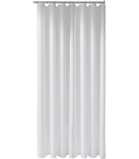 KEUCO PLAN Duschvorhang PLAN Flame CS 14944000420 2000 x 2000 mm, wollweiß/8 Ösen schwer entflammbar nach DIN 4102/B1 100 % Trevira, 80 g/m² seitlich gesäumt. Verstärkungsband für Edelstahlösen Abstand der Ösen ca. 20 cm Edelstahl-Rollsaum auf rechts genäht, per Meter 50 g duschdicht, fungizid, antibakteriell, antistatisch, kalandert, bei 30 Grad waschbar, Einlaufquote 1-2 % schadstoffgeprüft nach Öko-Tex-Standard 100 komplett mit Vorhangringen, weiß Hinweis zu den Maßen: Bei den angegebenen Maßen handelt es sich um fertige Vorhangmaße. Damit der Vorhang nicht im Wannenboden oder auf dem Fußboden aufliegt, empfehlen wir: Abstand vom Duschvorhang zum Boden ca. 30 mm. Abstand zwischen Stangenmitte und Oberkante Duschvorhang ca. 40 mm. Die Vorhangbreite sollte ca. das 1,3 bis 1,5-fache der Vorhangstangenlänge betragen. ...