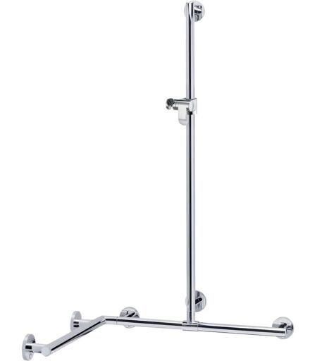 KEUCO PLAN CARE Duschhandlauf mit Brausestange 34915179911 Duschhandlauf mit Brausestange, Aluminium silber-eloxiert (E6 EV1)/verchromt, Winkel/T-Form, komplett mit Brauseschieber, in ästhetischem, funktionalem und ergonomischem Design, die Brausestange ist vor der Montage frei positionierbar, Ausführung rechts und links verwendbar, speziell für den Dusch- und Wannenbereich als Hilfe zum Festhalten und Abstützen, bis 130 kg belastbar, antistatisch, leicht zu reinigen, Außenmaß 1097/1097/1263 mm, Achsmaß waagerecht 900/900 mm, senkrecht 1100 mm, Rohrdurchmesser 33 mm, 6 Rosetten Durchmesser 82 mm, Ausladung 90 mm, Wandabstand 57 mm, der Duschhandlauf wird verdeckt angebracht Im Lieferumfang enthalten: 6 x Befestigungs-Set 1 Art.-Nr. 34990000100 (je 1 x pro Wandbefestigung) Der Handlauf ist Bauart geprüft Der Griff ist kombinierbar mit dem Duschspritzschutz 34940 und dem Klappsitz mit Rückenlehne 34981 Weitere Befestigungs-Sets (je nach Ankergrund/Mauerwerk): 6 x Befestigungs-Set 4 (Art.-Nr. 34990000200) oder 6 x Befestigungs-Set 7 (Art.-Nr. 34993000200) ...