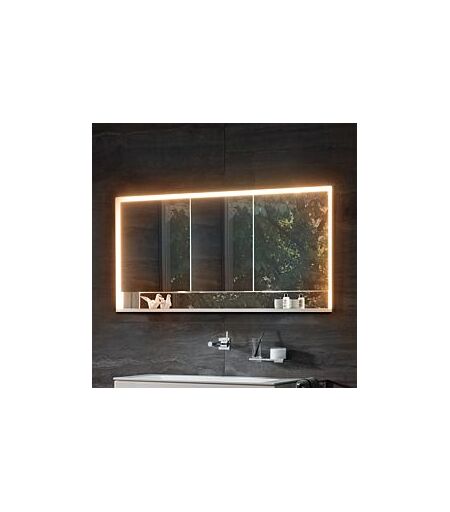 Keuco Royal Lumos Spiegelschrank 14315171301 Artikelnummer 14315171301Maße: 1200 x 735 x 165 mmWandeinbau-ModellTiefe vor der Wand: 35 mm3 Drehtüren aus Kristall-Doppelspiegeloffenes Ablagefach über die ganze Breitemit Tür-Anschlagdämpfermit Softclosing-ScharnierenKorpus in Aluminium silber-gebeizt-eloxiertRückwandverspiegelungHerstellergarantie: 5 JahreErsatzteilversorgung: 10 Jahreinklusive BefestigungsmaterialGerman Design Award 2018 WinnerBeleuchtung:stufenlos einstellbare Lichtfarbe von 2700 Kelvin (warmweiß) bis 6500 Kelvin (Tageslicht)Rahmenbeleuchtung und Waschtisch-/Fachbeleuchtungseparat stufenlos dimmbar und ein-/ausschaltbarLED 65 Watt (Lebensdauer > 30.000 Std.) 65 kWh/1000hAustausch der LED-Streifen mit Steckverbindungen durch FachhandwerkerBedienung:Tastenfelder mit kapazitiver Touch-Sensorikintegrierte Nebenstellenfunktion für z. B. RaumschalterInnenausstattung:großzügiges Stauraumangebotvariable Innenaufteilungverspiegelte Rückwand2 Steckdosen6 höhenverstellbare Glasablagen ...