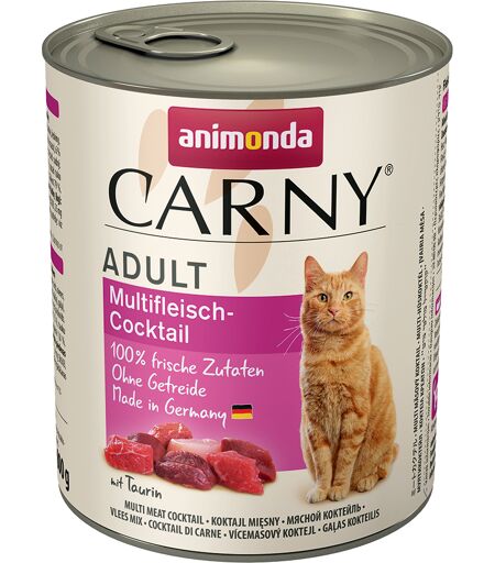Fleischige Abwechslung bietest du deiner Samtpfote mit den Rezepturen von animonda Carny. Bestens für ausgewachsene Katzen von 1-6 Jahren geeignet, basiert dieses Nassfutter mit ausgewählten, frischen fleischlichen Zutaten auf der natürlichen Ernährung von Katzen. Denn Katzen lieben Fleisch! Die Rezeptur ist außerdem komplett ohne Getreide und Soja, und so auch ein Geschmackserlebnis für ernährungssensible Katzen. Als wertvolle Proteinquelle dienen ausschließlich frische fleischliche Zutaten wie Herz, Lunge, Muskelfleisch und Leber. Diese besonders hochwertigen tierischen Eiweißquellen liefern außerdem natürliches Taurin, eine Aminosäure, die essenziell für Katzen ist. Taurin unterstützt die natürliche Sehkraft und Herzfunktion. Auf die Zugabe von künstlichen Farb- oder Konservierungsstoffen wird vollständig verzichtet. Durch die Anreicherung mit wichtigen Vitaminen und Mineralstoffen erhält deine Katze mit diesem Futter alles, was sie für eine ausgewogene und ganzheitliche Ernährung benötigt. animonda Carny Adult im Überblick: Ausgewogenes Alleinfutter für alle ausgewachsenen Katzen (1-6 Jahre) Ideal für ernährungssensible Katzen und Allergiker Fördert ein natürliches Wachstum und erfüllt das Ernährungsprofil von Kitten Getreidefrei: für beste Verträglichkeit, leicht verdaulich Ausschließlich frisches Fleisch und Innereien: liefern beste Proteine, natürliches Taurin und einen unvergleichlichen Geschmack Offene Deklaration: was ausgelobt wird, ist auch wirklich enthalten OHNE: Konservierungs- und Farbstoffe, Geschmacksverstärker, Soja, Zucker Hergestellt in Deutschland Mixpaket Rind – 3 Sorten im Überblick 2 x Rind 2 x Multi-Fleischcocktail 2 x Rind Huhn Mixpaket Rind Geflügel – 3 Sorten im Überblick 2 x Rind, Huhn Entenherzen 2 x Rind, Pute Shrimps 2 x Rind, Pute Kaninchen ...
