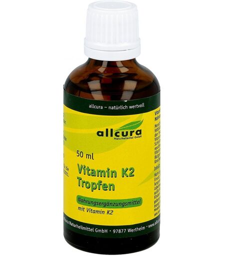 Anwendungsgebiet von allcura Vitamin K2 Tropfenallcura Vitamin K2 Tropfen sind ein Nahrungsergänzungsmittel. Sie können helfen, den täglichen Bedarf an Vitamin K2 zu decken.Wirkungsweise von allcura Vitamin K2 TropfenMenachinon MK-7 ist die aktive Form das fettlöslichen Vitamins K2. Es liegt in der all-trans Form vor. Diese kann vom Körper gut verwertet werden. Die Schleimhäute können das Vitamin K2 zusammen mit den hochwertigen Pflanzenölen besonders gut aufnehmen. Daraus resultiert die hohe Bioverfügbarkeit des Vitamins. Vitamin K2 trägt zu einer normalen Blutgerinnung und zur Erhaltung normaler Knochen bei.Wirkstoffe / Inhaltsstoffe / ZutatenInhaltsstoffe von allcura Vitamin K2 Tropfen Zutaten: Hagebuttenkernöl, Vitamin K 2 (Menachinon MK-7), Stabilisator: Vitamin E (natürliche Mischtocopherole), Sanddornfruchtfleisch, Aroma, (natürliche etherische Gewürzpflanzenöle Ackerminze und Salbei) 10 Tropfen = 75 µg aktives K2GegenanzeigenBei bekannter Überempfindlichkeit gegenüber einem der oben genannten Inhaltsstoffe sollte das Produkt nicht verwendet werden.DosierungAnwendungsempfehlung von allcura Vitamin K2 Tropfen: 1-mal Täglich 10 Tropfen einnehmen. deckt mit 75 µg aktivem K2 100% der Referenzwerte für die tägliche Zufuhr.Einnahme1-mal Täglich 10 Tropfen.HinweiseNahrungsergänzungsmittel sind kein Ersatz für eine ausgewogene und abwechslungsreiche Ernährung. allcura Vitamin K2 Tropfen sollten außerhalb der Reichweite von Kindern aufbewahrt werden. Die täglich empfohlene Verzehrmenge sollte nicht überschritten werden. allcura Vitamin K2 Tropfen können in Ihrer Versandapotheke www.juvalis.de erworben werden. ...